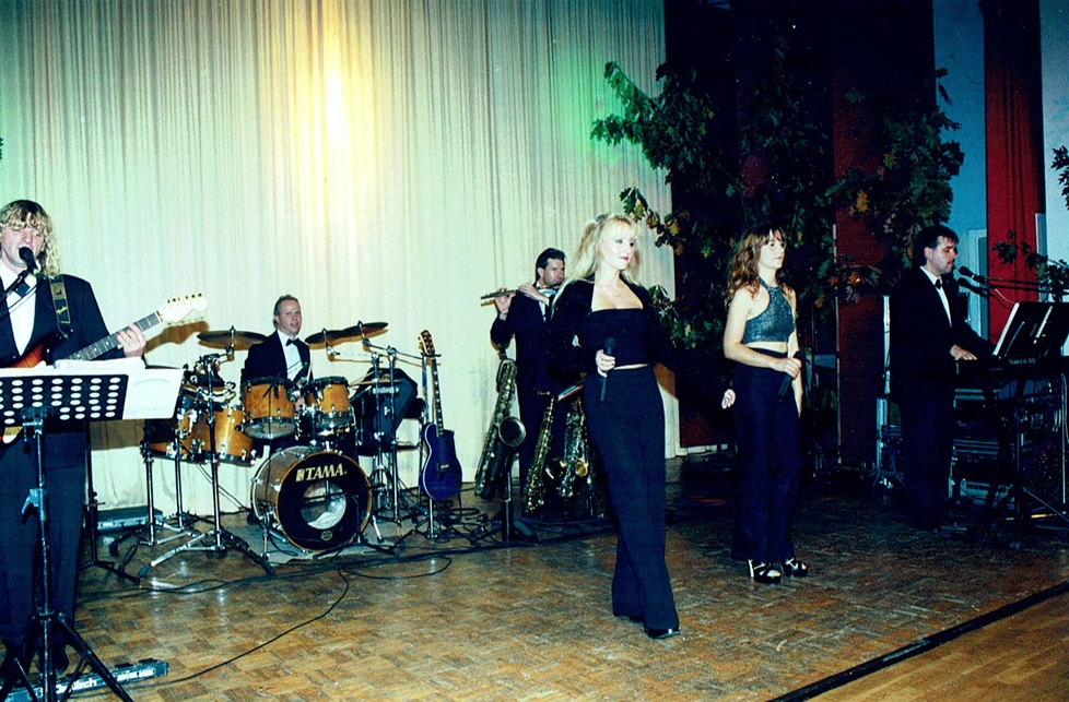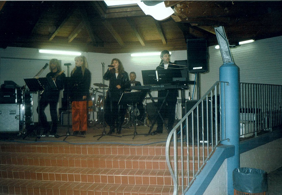 Die Jet-Band, zusammen mit Ute Freudenberg (April 1998). Hier haben wir gemeinsam die Seebrücke in Sellin eröffnet.